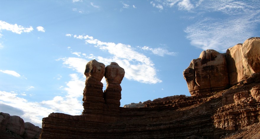 At first sight the Dinetah seems a callous rock desert where the living is harsh, but if you look closely you will find myths and legends in every nook and cranny of this strikingly red land. One hot and muggy afternoon I was hiking when the ground unexpectedly seemed to disappear, revealing a stunning canyon: Tséyi or Inside the Rock. I hiked down into the canyon when out of nowhere the darkest shadow fell over me, as if Thunderbird blackened the skies with his gigantic wings. And with each wingbeat a thunderclap roared through the canyon, ricochetting off the cliff walls. A heavy rain, chasing me to higher grounds, flash flooded Tséyi. Seeking shelter in a narrow cave I could not but stand in awe of Thunderbird and his mythical powers. It was in that cave that I knew I had to write about the native myths and legends, it was in that cave that The Sun Spirit, the first volume of the tetralogy Warriors of the Sun, was born.